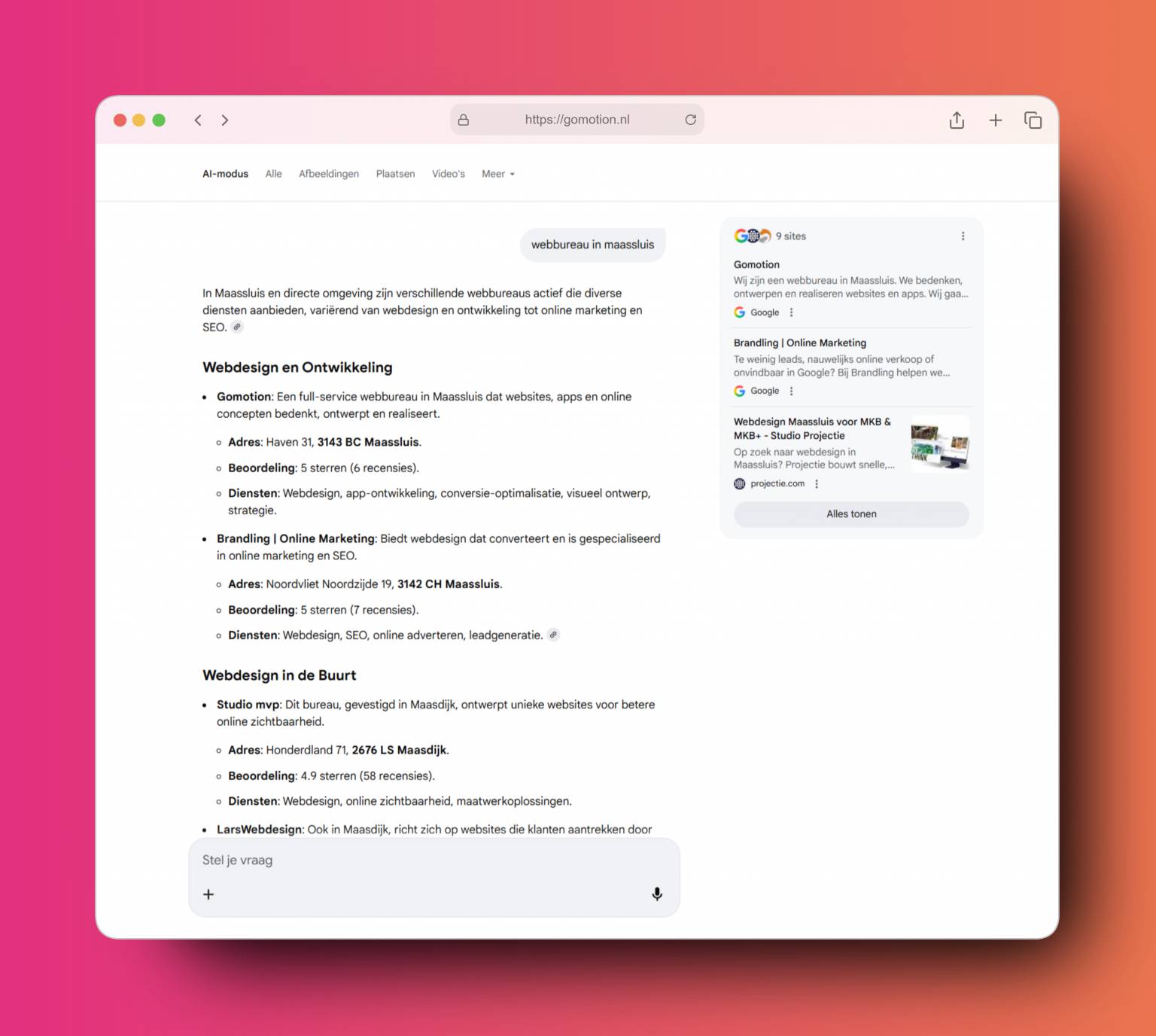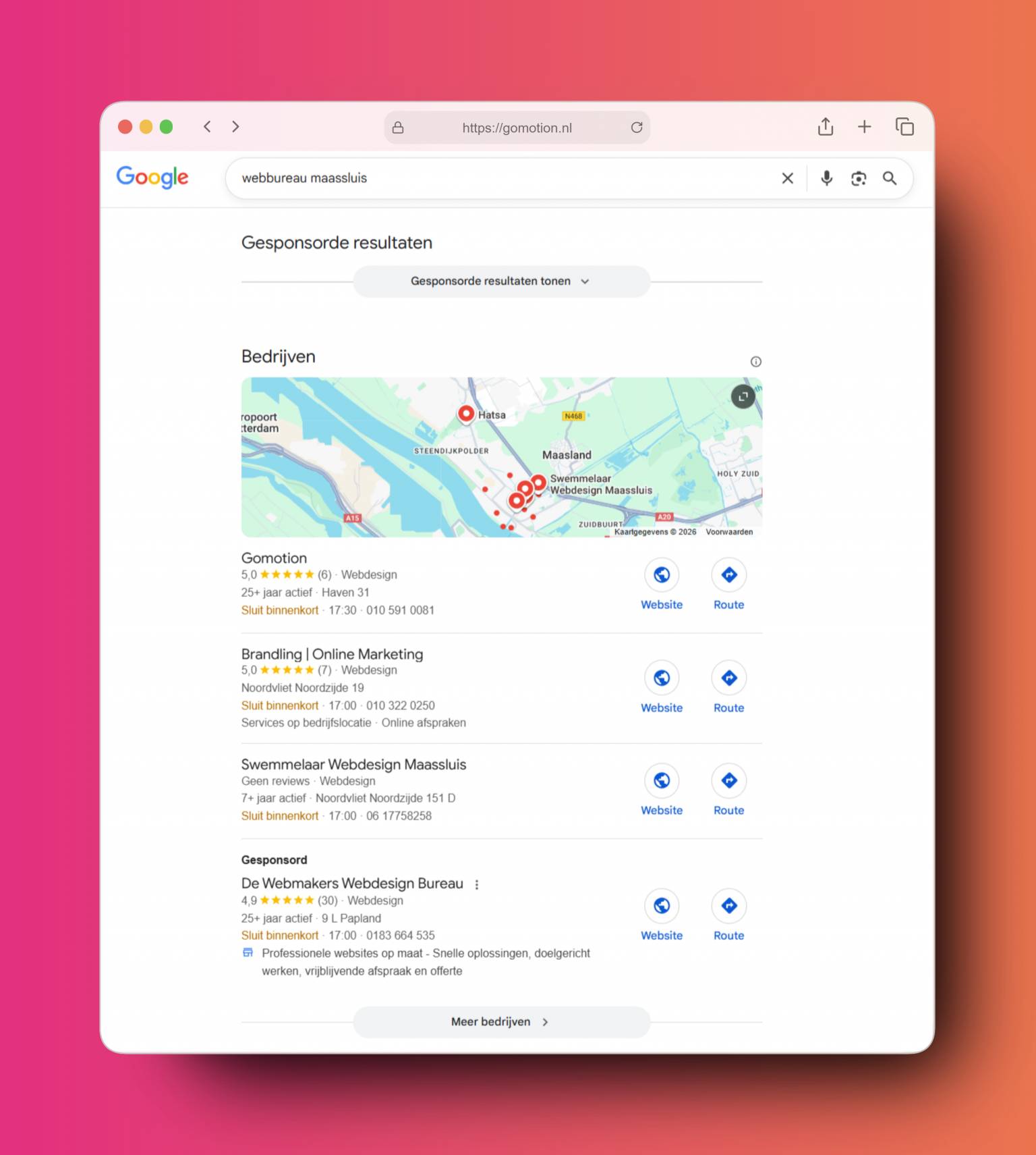 Lokale SEO is een vorm van SEO die zich richt op zoektermen met een lokale intentie. Je moet hierbij denken aan een zoekterm als 'schildersbedrijf Maassluis'.
