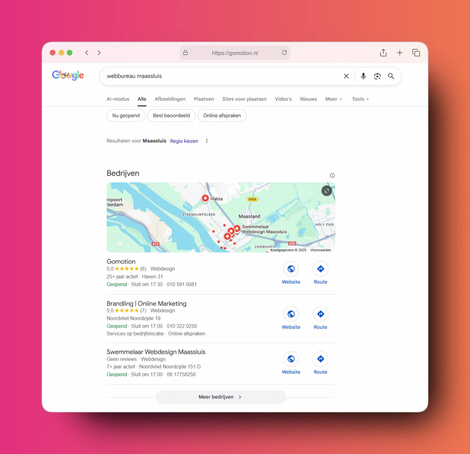 Lokale SEO optimalisatie is geschikt voor bedrijven met een fysieke locatie zoals een winkel, groothandel of de horeca, en dienstverleners met een servicegebied. Je kunt hierbij denken aan zorgverleners, hoveniers, accountants, fysiotherapeuten en meer.