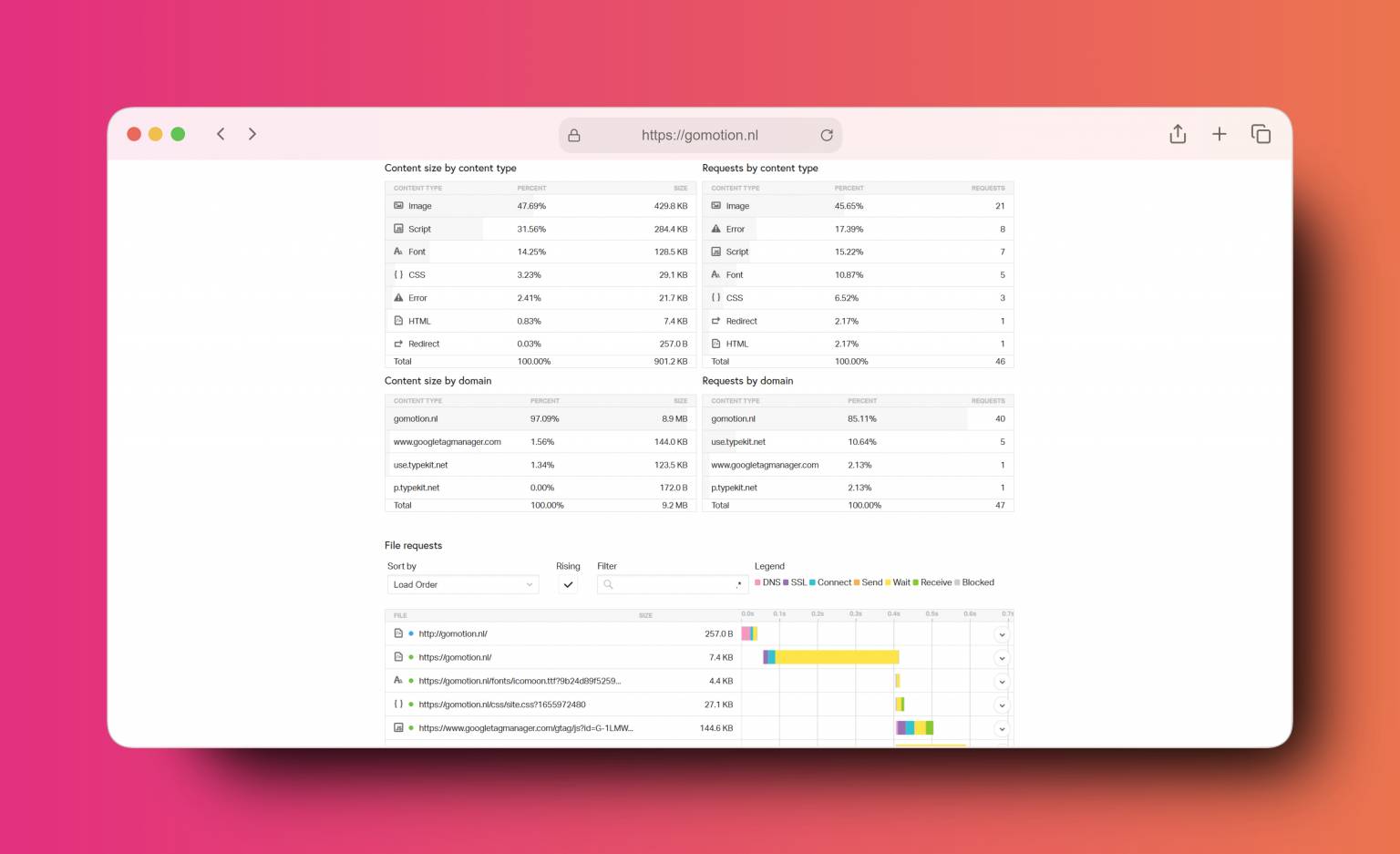 Snelheid van een website