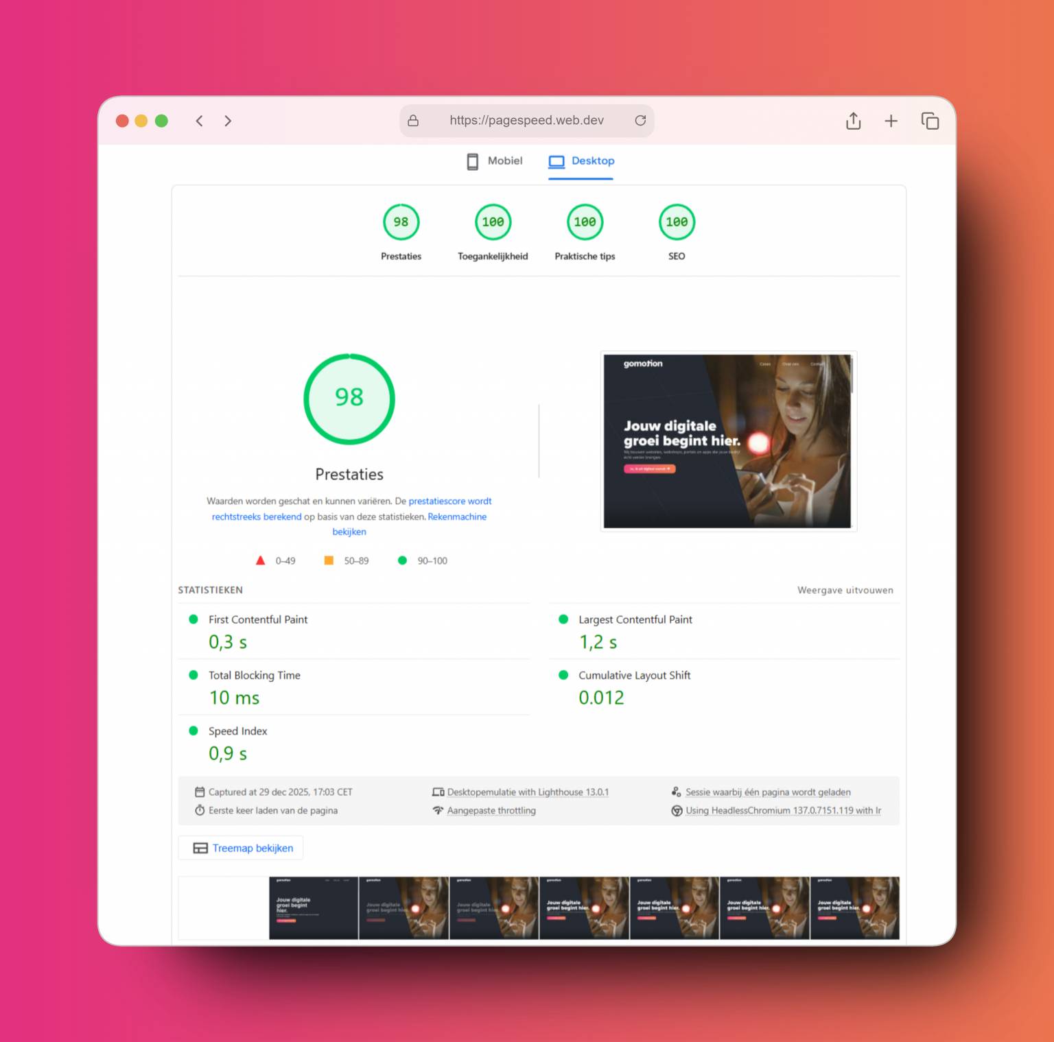 De LCP waarde (Largest Contentful Paint) is een indicator die aangeeft hoe lang het duurt voordat de belangrijkste content op het scherm wordt weergegeven.